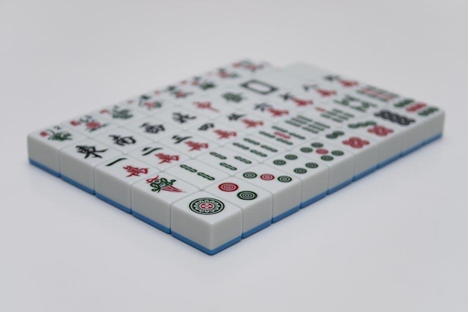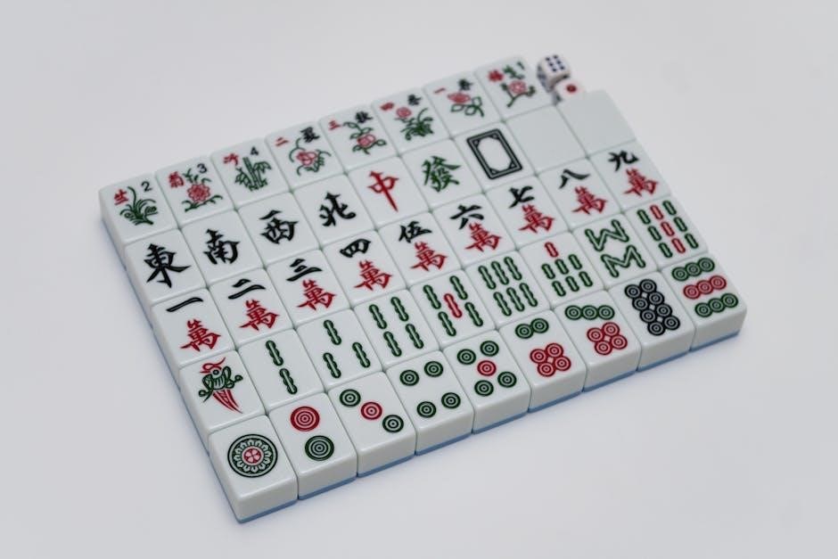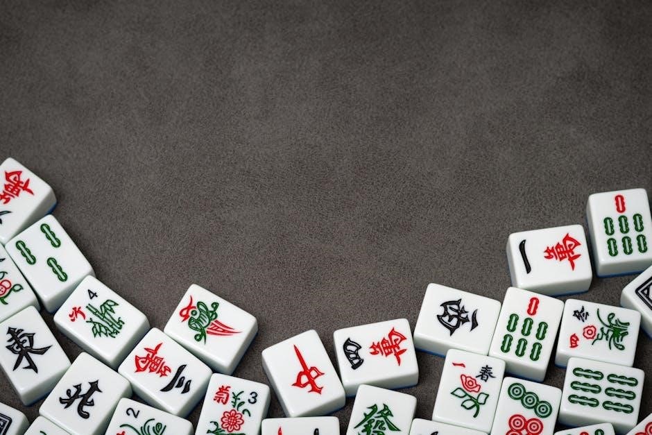 Unlike the NMJL card’s pre-defined hands, Riichi focuses on yaku – specific combinations granting points. Gameplay involves discarding, calling, and strategically concealing tiles. The PDF won’t assist with understanding Riichi’s scoring or unique mechanics. Players transitioning from American Mahjongg will find Riichi a complex, yet rewarding, alternative, requiring a separate rule set.